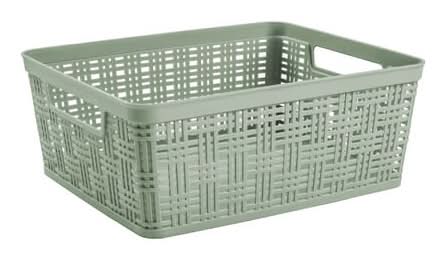 Simply Tidy Plastic Wicker Storage Basket, Sage Green