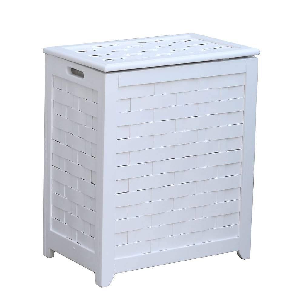 Oceanstar Rhv0103w Rectangular Veneer Laundry Wood Hamper With Interior Bag, White