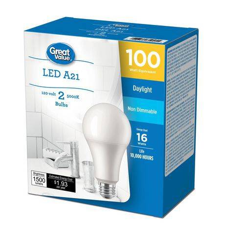 Great Value 100W A21 Daylight Led Bulbs 2-pack