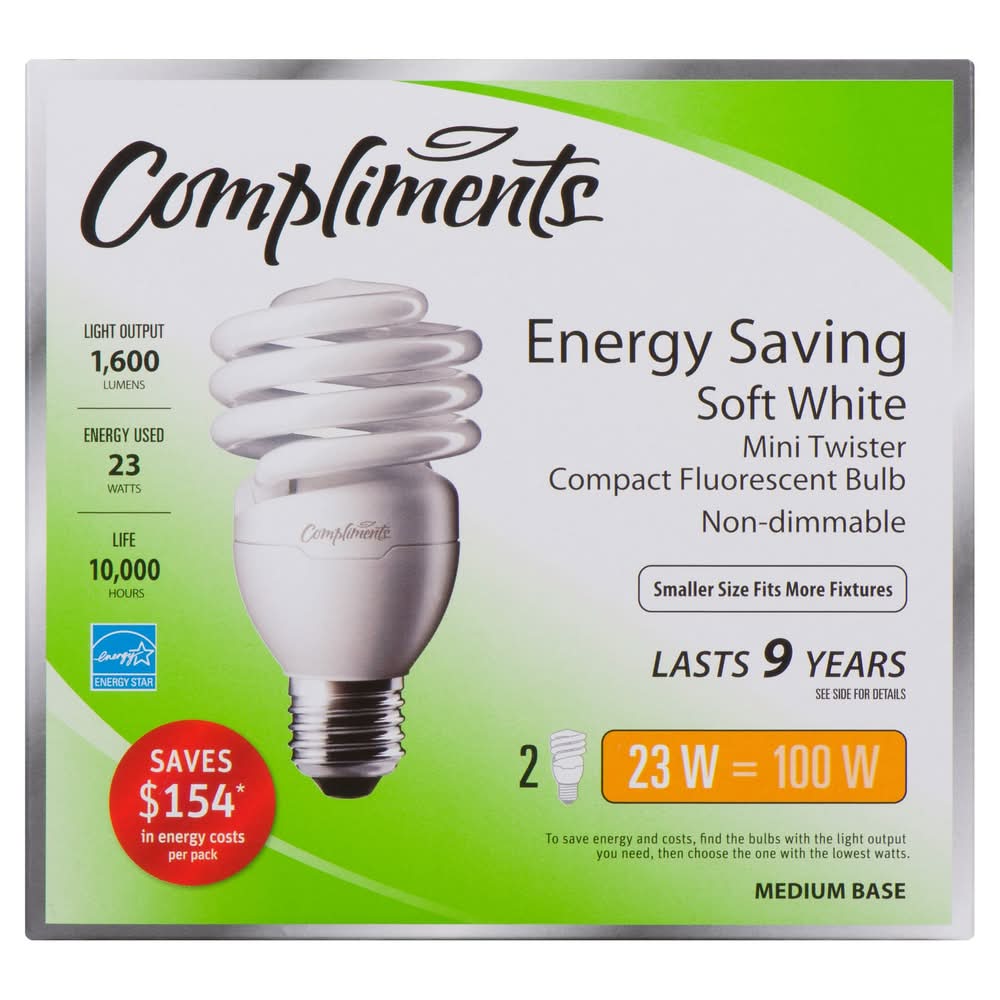 Compliments Energy Saving Mini Twister Compact Fluorescent Bulb 23 Watt, Soft White (2 ct)