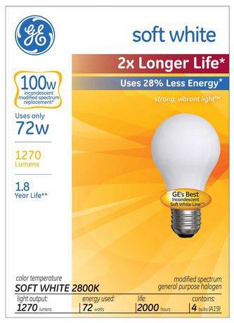 General Electric Ge Energy-Efficient Soft White 72w A19 4 Pk