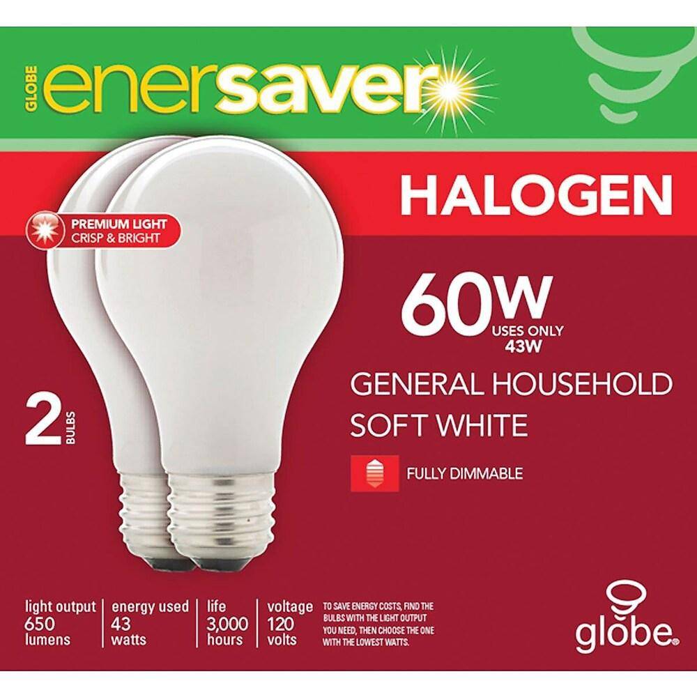 Globe Electric Enersaver Halogen A19 43w Bulbs, Soft White