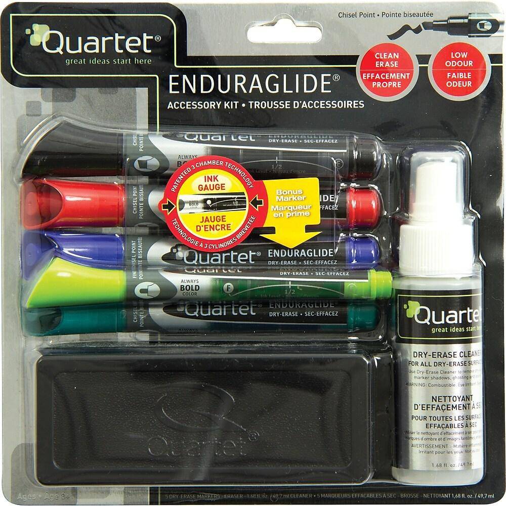 Quartet Enduraglide Chisel Tip Dry - Erase Markers Accessory Kit, Assorted Colours