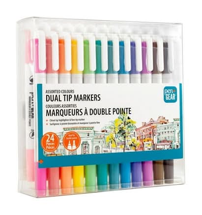 Pen+Gear Fine & Chisel Dual Tip Markers, Assorted (24 ct)