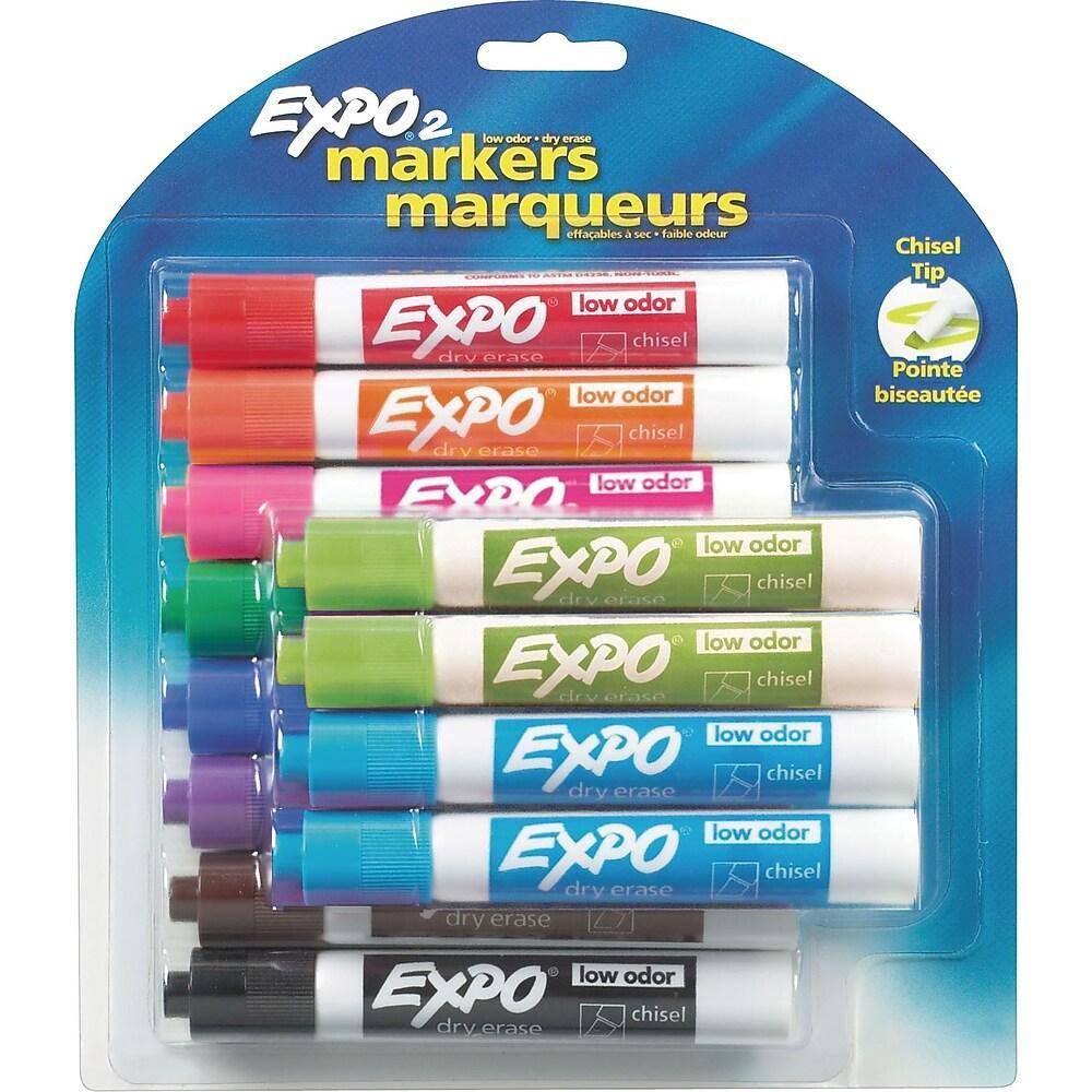 Expo Low Odour Dry-Erase Markers, Chisel Tip, Assorted, 12/pack