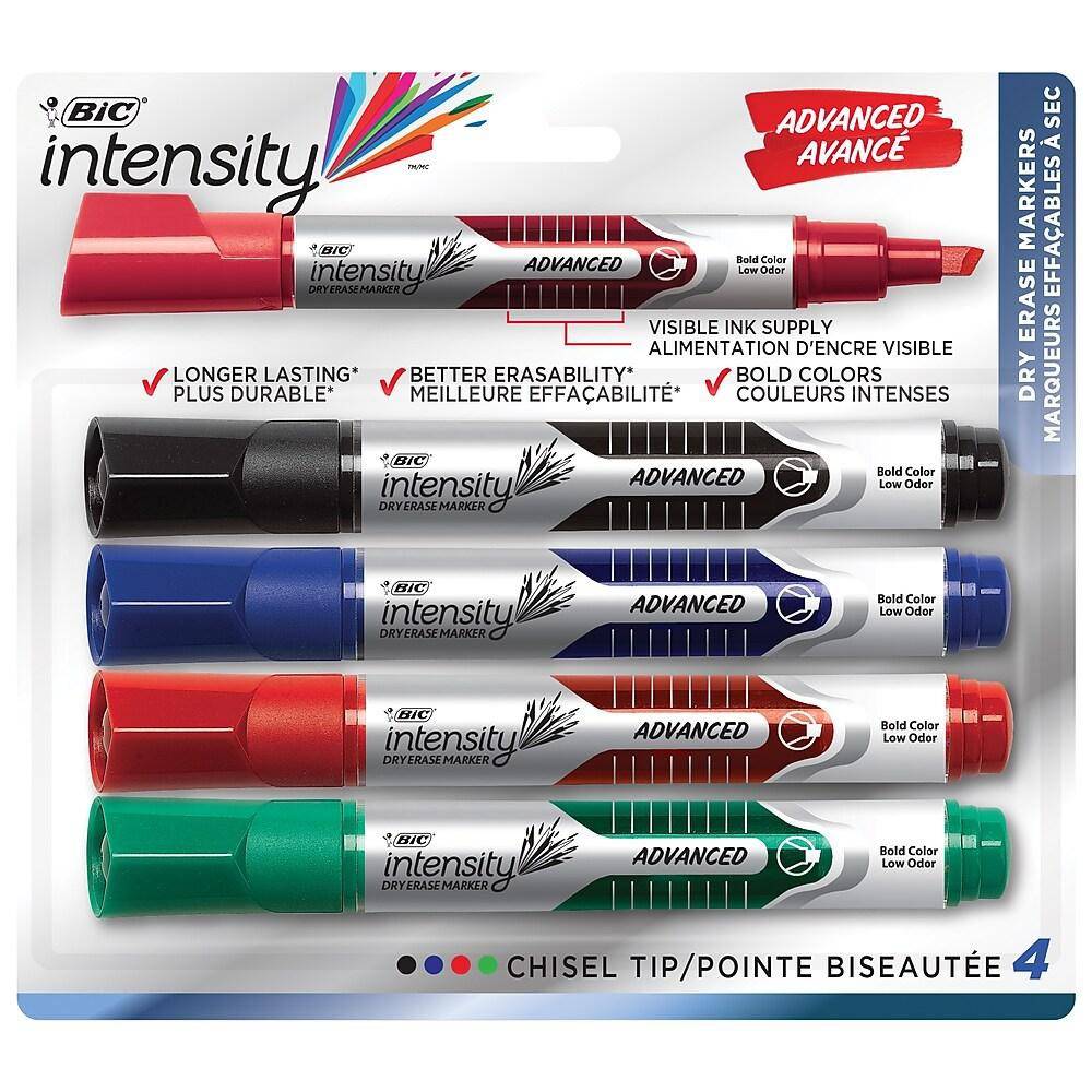 BiC Magic Marker Brand Dry Erase Liquid Markers, Chisel Tip, Assorted, 4/pack