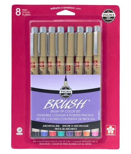 Pigma Brush Tip Color Pens Set, Assorted (8 ct)