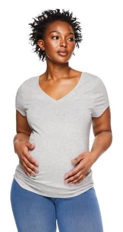 Paisley Sky Maternity Short Sleeve V-Neck Tee, Women, XL, Grey