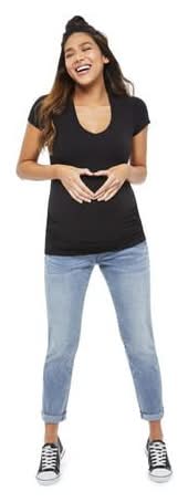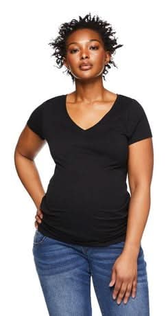 Paisley Sky Maternity Short Sleeve V-Neckline Tee, S, Solid Black