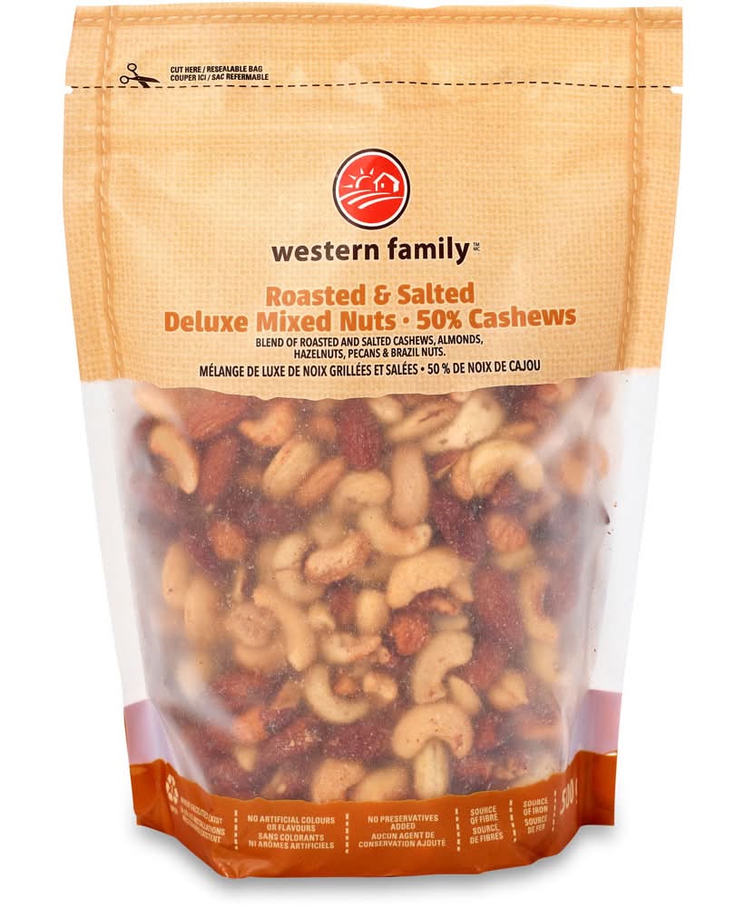 Western Family Roasted Deluxe Mixed Nuts, Salted (500 g)