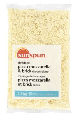 Sunspun Shredded Cheese Blend, Pizza Mozzarella & Brick (2.5 kg)