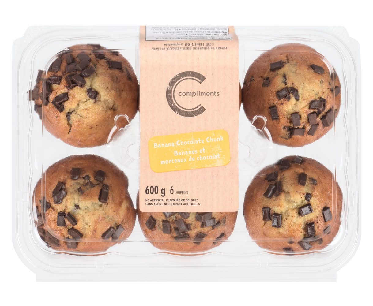 Compliments Banana Chocolate Chunk Muffins (600 g, 6 ct)