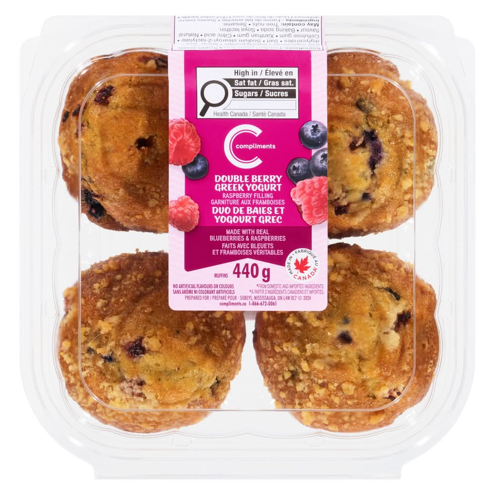 Compliments Muffins Double Berry Greek Yogurt, Blueberries-Raspberries (440 g)