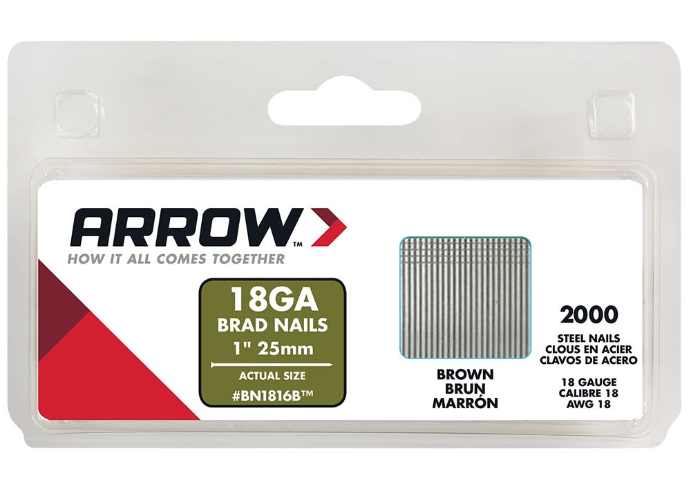 Arrow 18-Gauge Steel Brad Nails, 1 in, Brown (2000 ct)