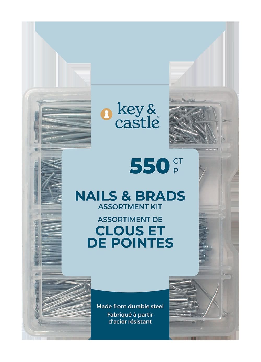 Key & Castle Durable Steel Nails & Brads Assortment Kit (550 ct)
