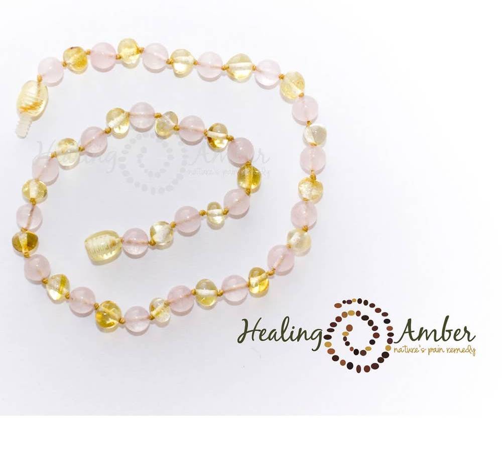 Healing Amber Gemstone Necklace Gold Amber & Rose Quartz, 11 in, Gold Amber & Rose Quartz