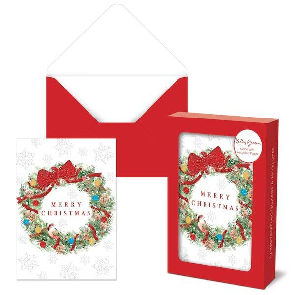 Punch Studio Traditional Wreath Holiday Note Cards
