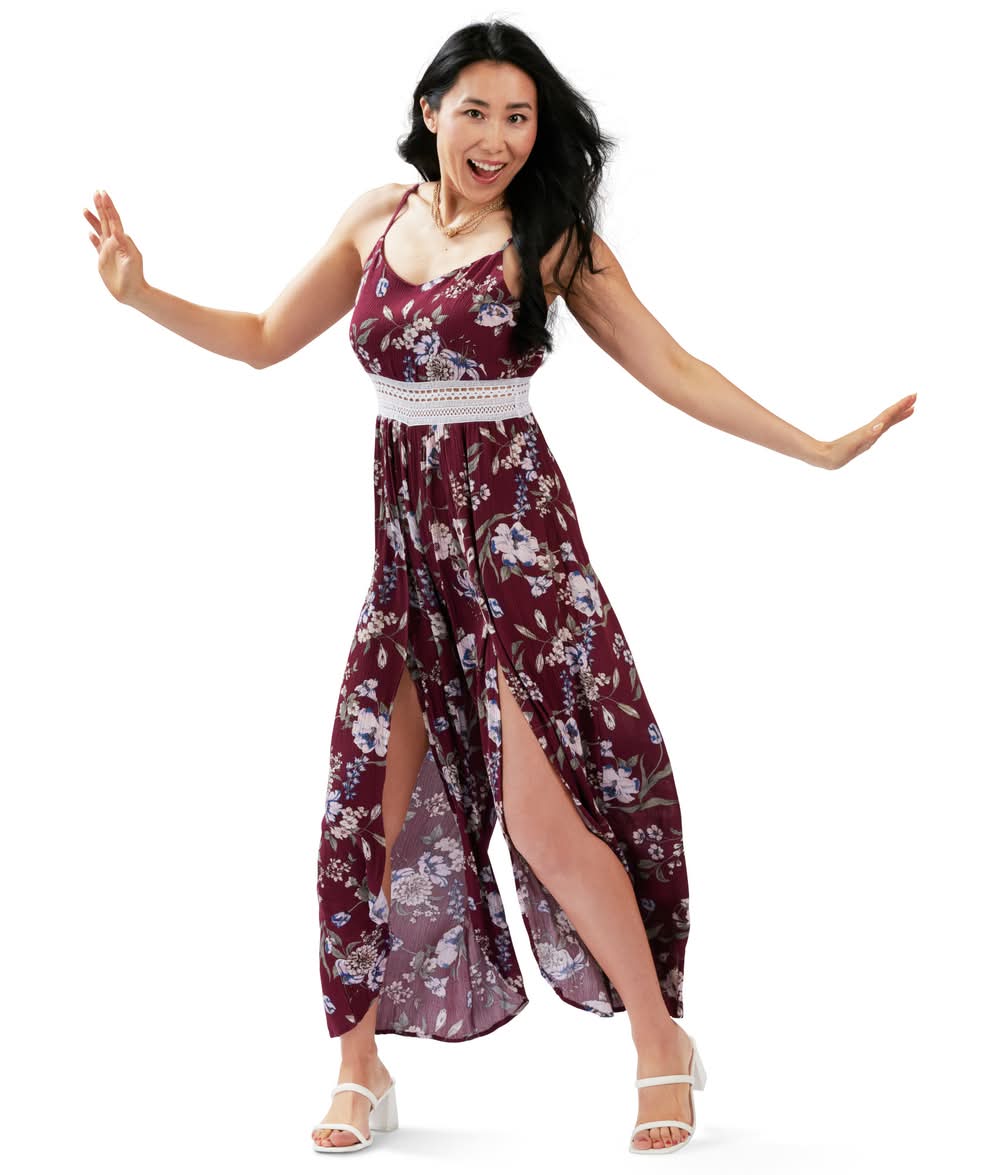 Lily morgan Tulip Leg Jumpsuit, Women, XL, Dk Red Fl1