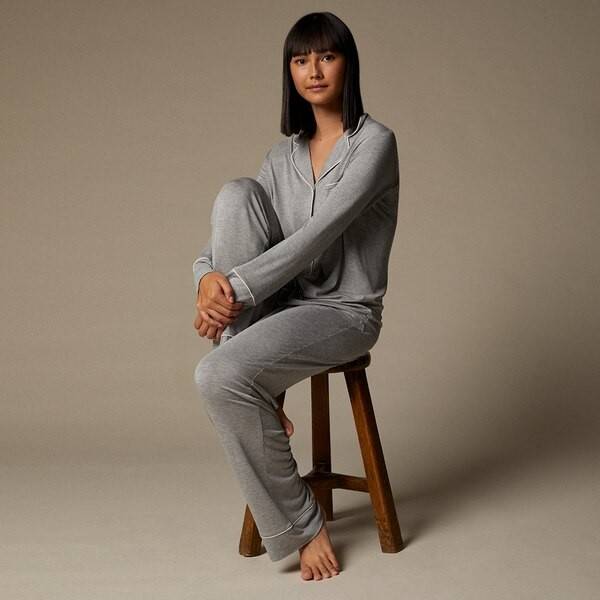 Love & Lore Piped Pajama Pant Set, Heather Grey X-Small
