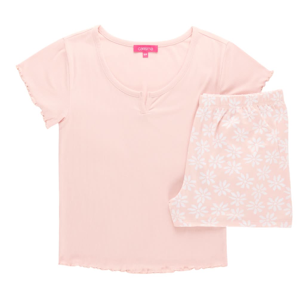 Carisma Ribbed Scooped Boxer Pajama Set, S, Roseate Spoo