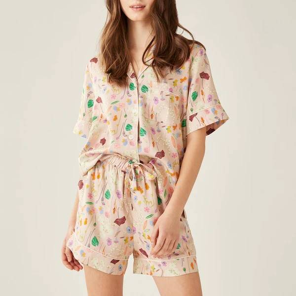 Love & Lore Tailored Pajama Short Set, Blush Floral Medium