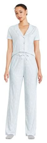 Love & Lore Azalea Pajama Set, Steel Blue Stripe Small