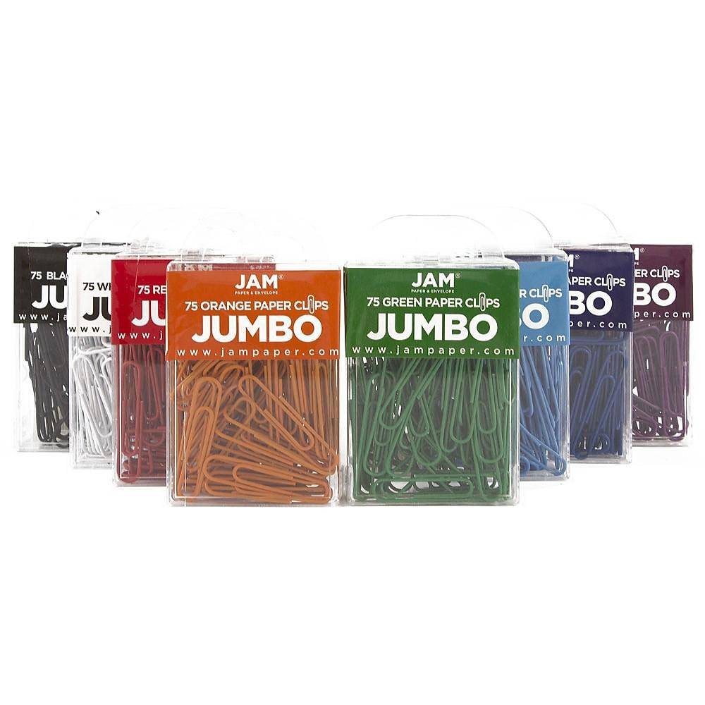 Jam Paper Coloured Jumbo Paper Clips, Large, Assorted Paperclips, 10 packs Of 75 Clips, 750/set