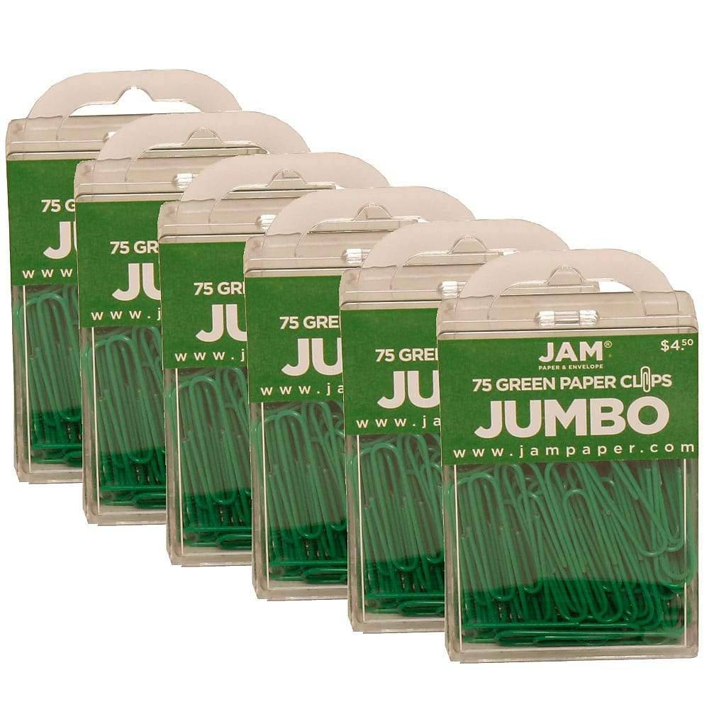 Jam Paper Coloured Jumbo Paper Clips, Large, Green Paperclips, 6 packs Of 75, 450 Total (42186878g)