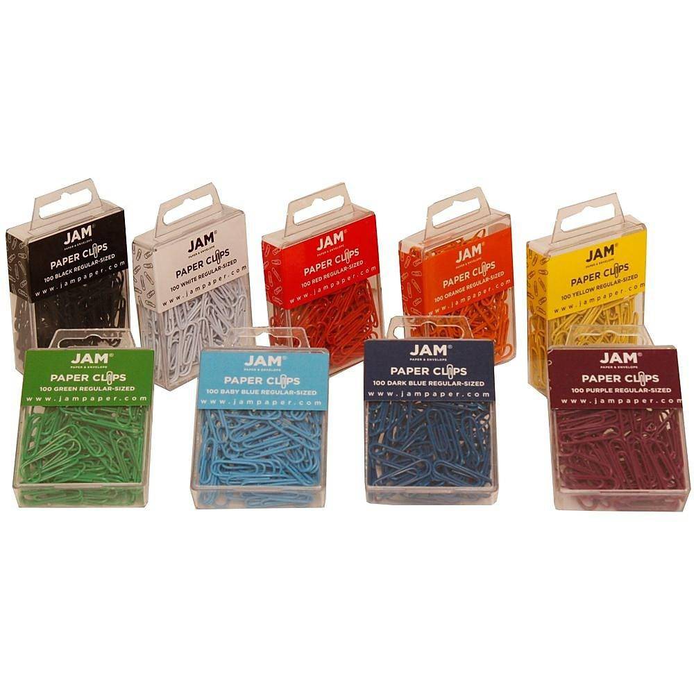 Jam Paper Coloured Standard Paper Clips, Small, Assorted Paperclips, 9 packs Of 100 Clips, 900/pack
