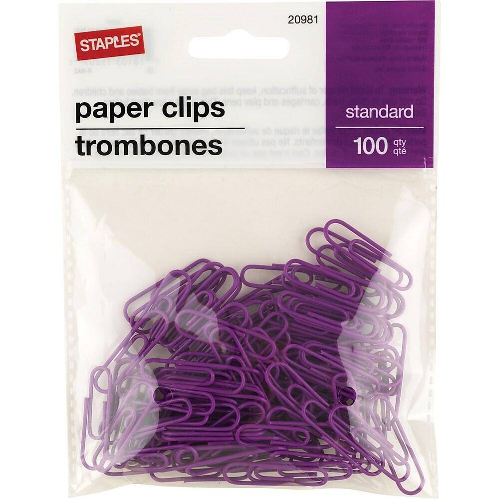 Staples Standard Vinyl-Coated Paper Clips, Purple