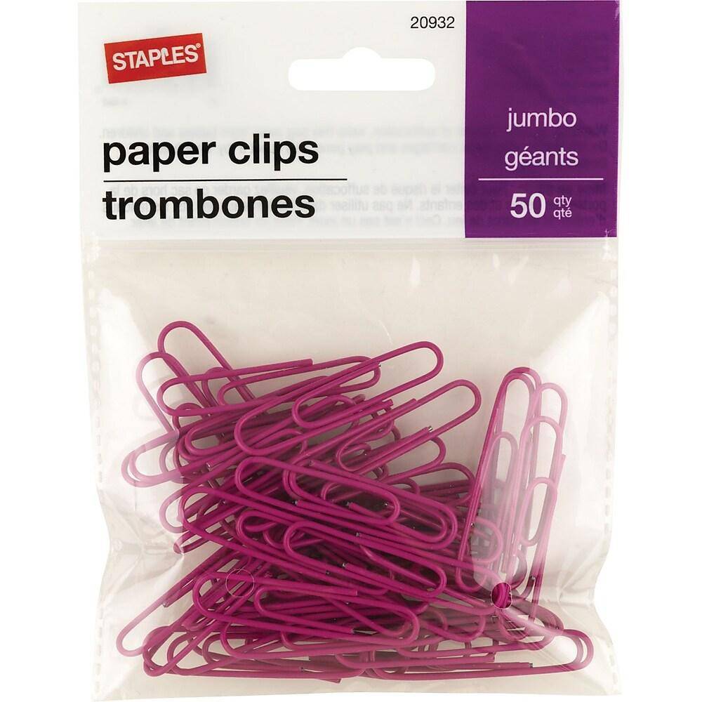 Staples Jumbo Vinyl-Coated Paper Clips, Pink, 50/pack