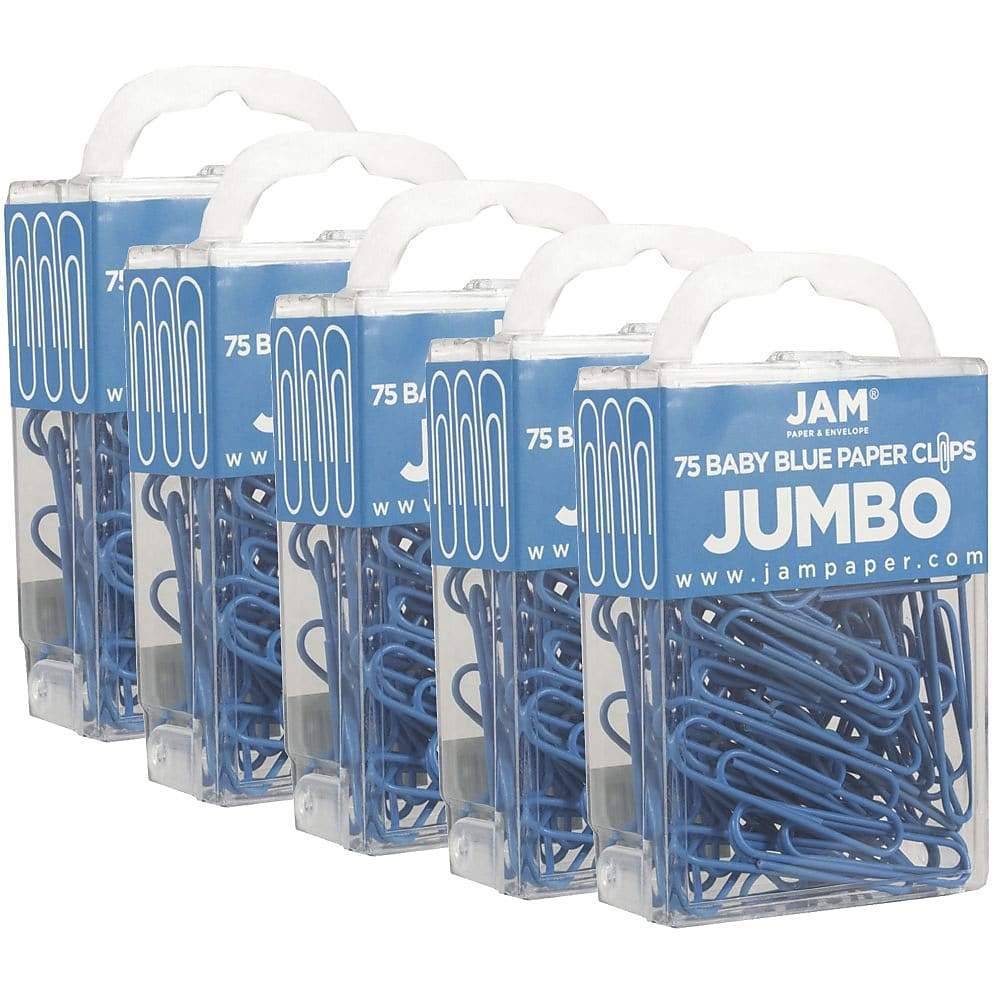 Jam Paper Coloured Jumbo Paper Clips, Large, Baby Blue Paperclips, 5 packs Of 75, 375 Total (221819034g)