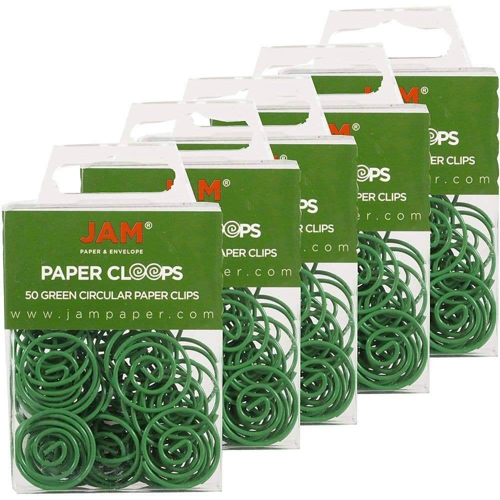 Jam Paper Circular Coloured Papercloops, Green Round Paper Clips, 5 packs Of 50, 250 Total (2187135g)