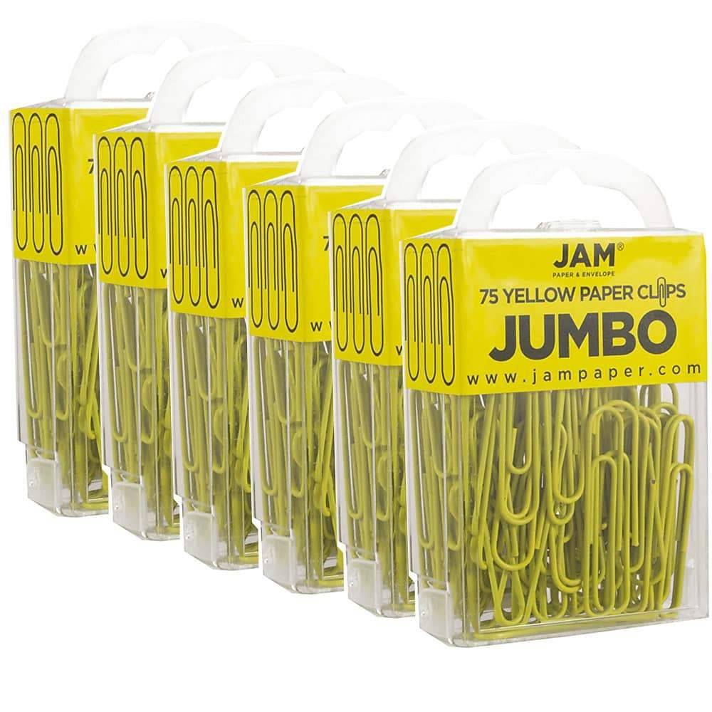 Jam Paper Coloured Jumbo Paper Clips, Large, Yellow Paperclips, 6 packs Of 75, 450 Total (42182236g)