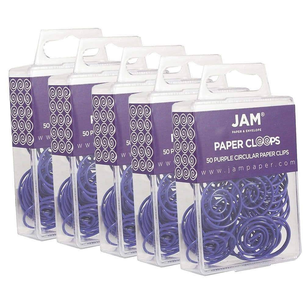 Jam Paper Circular Coloured Papercloops, Purple Round Paper Clips, 5 packs Of 50, 250 Total (2187137g)
