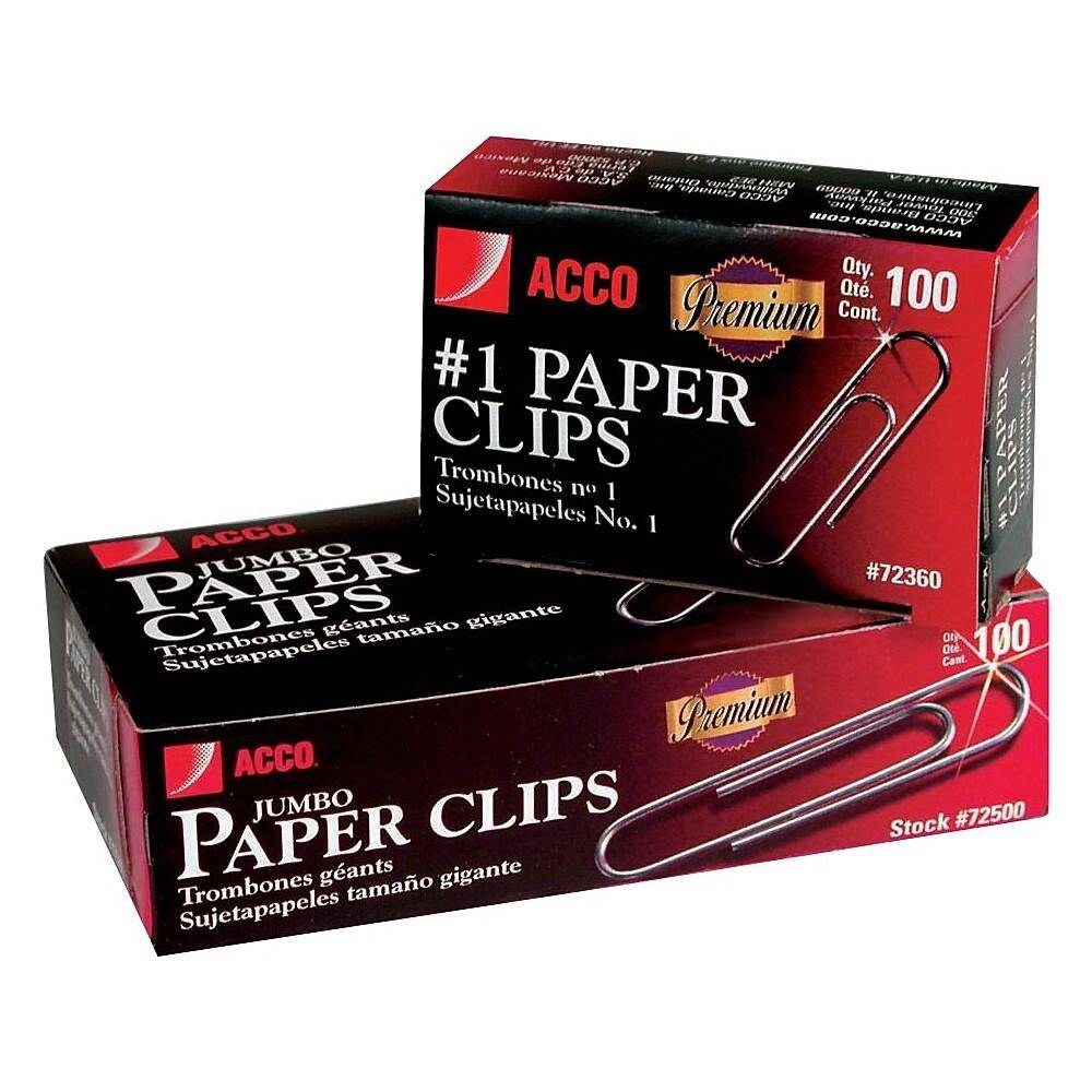Acco Premium Quality Jumbo Paper Clips, Smooth, 100/pack