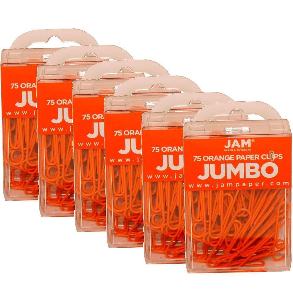 Jam Paper Coloured Jumbo Paper Clips, Large, Orange Paperclips, 6 packs Of 75, 450 Total (42186871g)