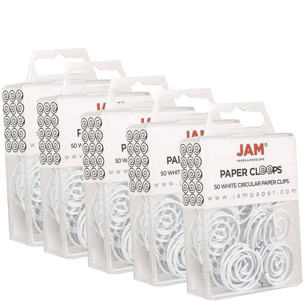 Jam Paper Circular Coloured Papercloops, White Round Paper Clips, 5 packs Of 50, 250 Total (2187139g)
