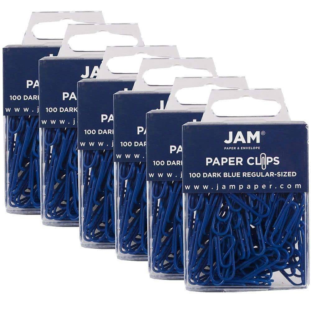 Jam Paper Coloured Standard Paper Clips, Small, Dark Blue Paperclips, 6 packs Of 100, 600 Total (42186868g)