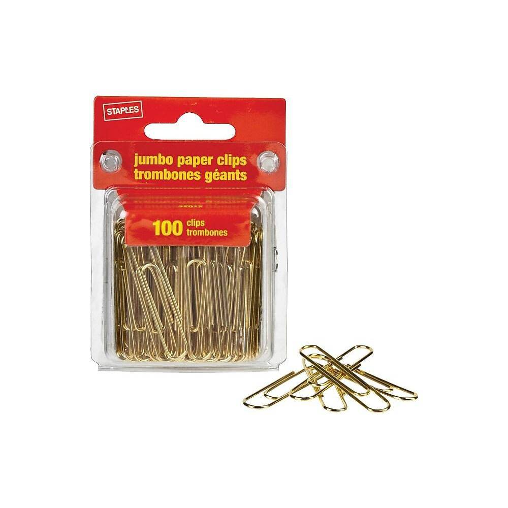 Staples Jumbo Gold Paper Clips, Gold Tone, 100/pack