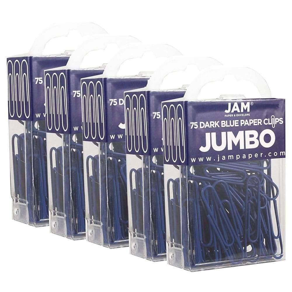 Jam Paper Coloured Jumbo Paper Clips, Large, Dark Blue Paperclips, 5 packs Of 75, 375 Total (42186869g)