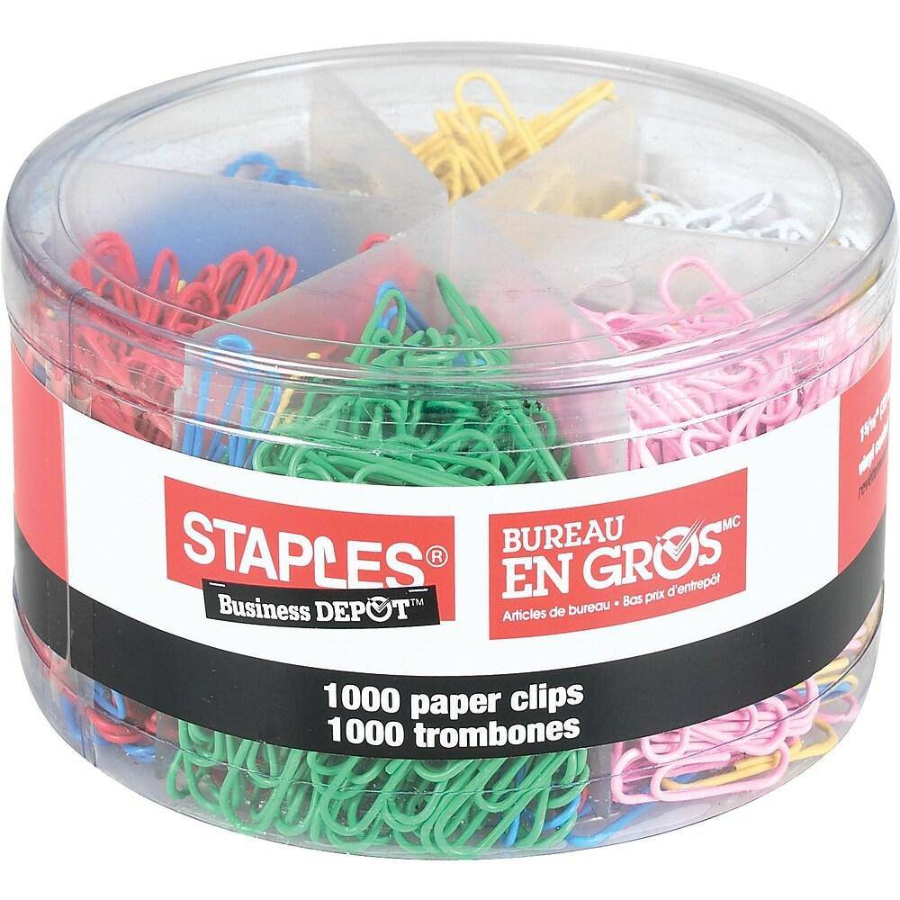 Staples #1 Size Vinyl-Coated Paper Clips, Assorted Colours