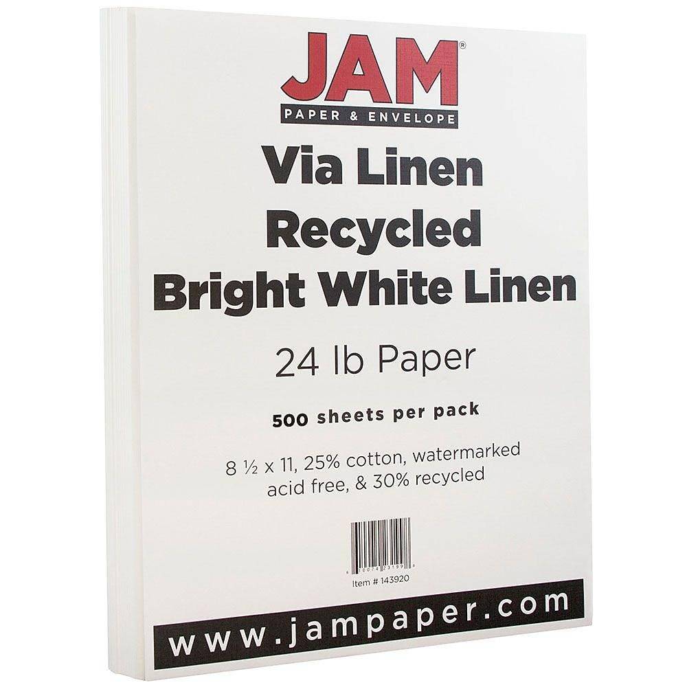 Jam Paper Strathmore Paper, 8.5 X 11, 24lb Bright White Linen, 500/pack (143920b)