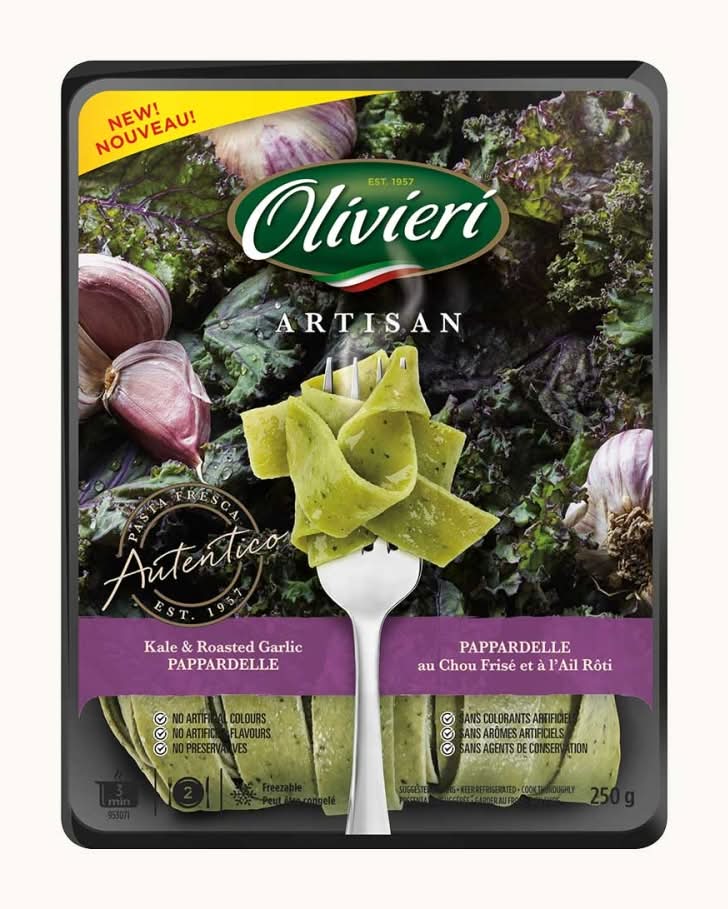 Olivieri Artisan Pappardelle, Kale & Roasted Garlic (250 g)