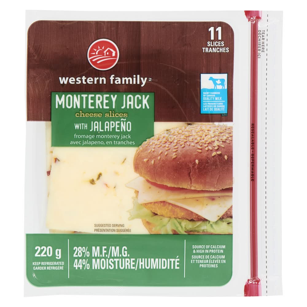 Western Family Monterey Cheese Slices, Jalapeno (220 g, 11 ct)