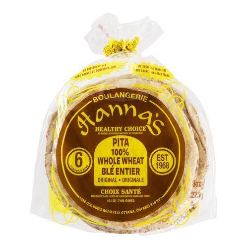 Hanna's Original Whole Wheat Pita Bread, 10" (400 g)