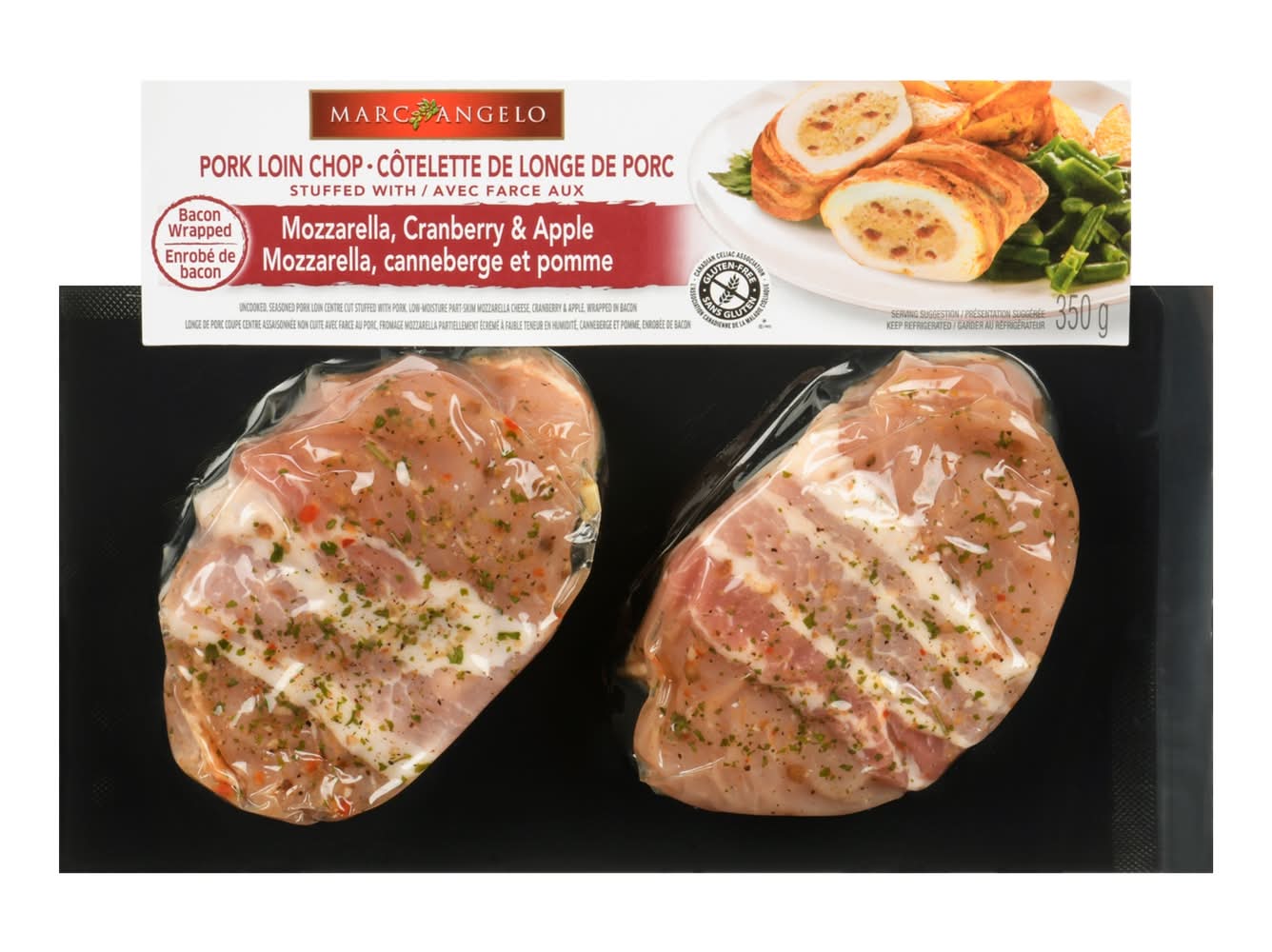 Marcangelo Foods Bacon Wrapped Pork Loin Chop, Cranberry-Apple-Mozzarella (350 g, 2 ct)