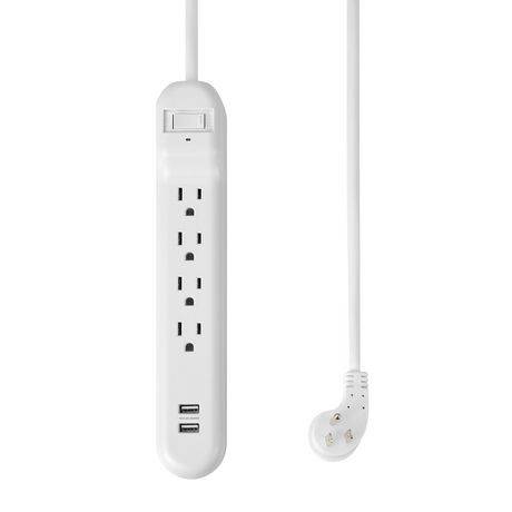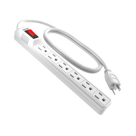 elink 6-Outlet Power Bar With Surge Protection, 2 ft, White