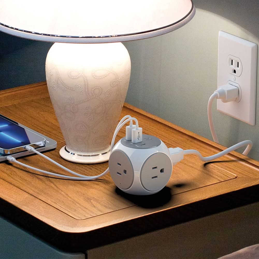 Atomi Power Cube With 3 Ac Outlets + 2 Usb-A + 1 Usb-C, 5 ft, White (2 ct)