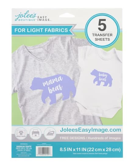 Jolee's Boutique Easy Image Transfer Sheets For Light Stretchy Fabrics, 8.5x11 in (5 ct)